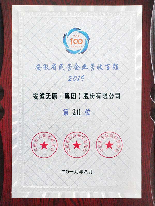 2019年度安徽省民营企业营业收入百强
