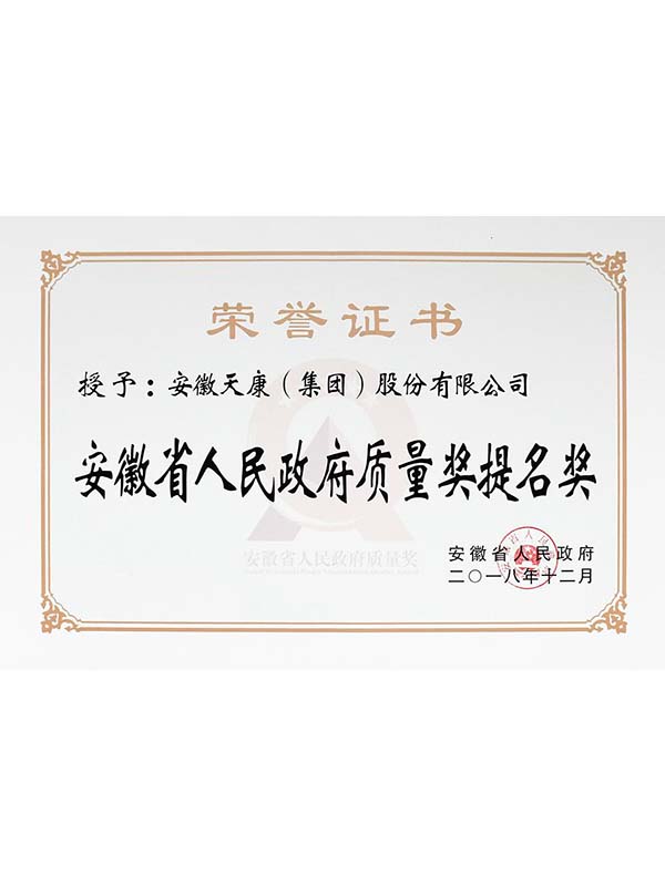 安徽省人民政府质量提名奖